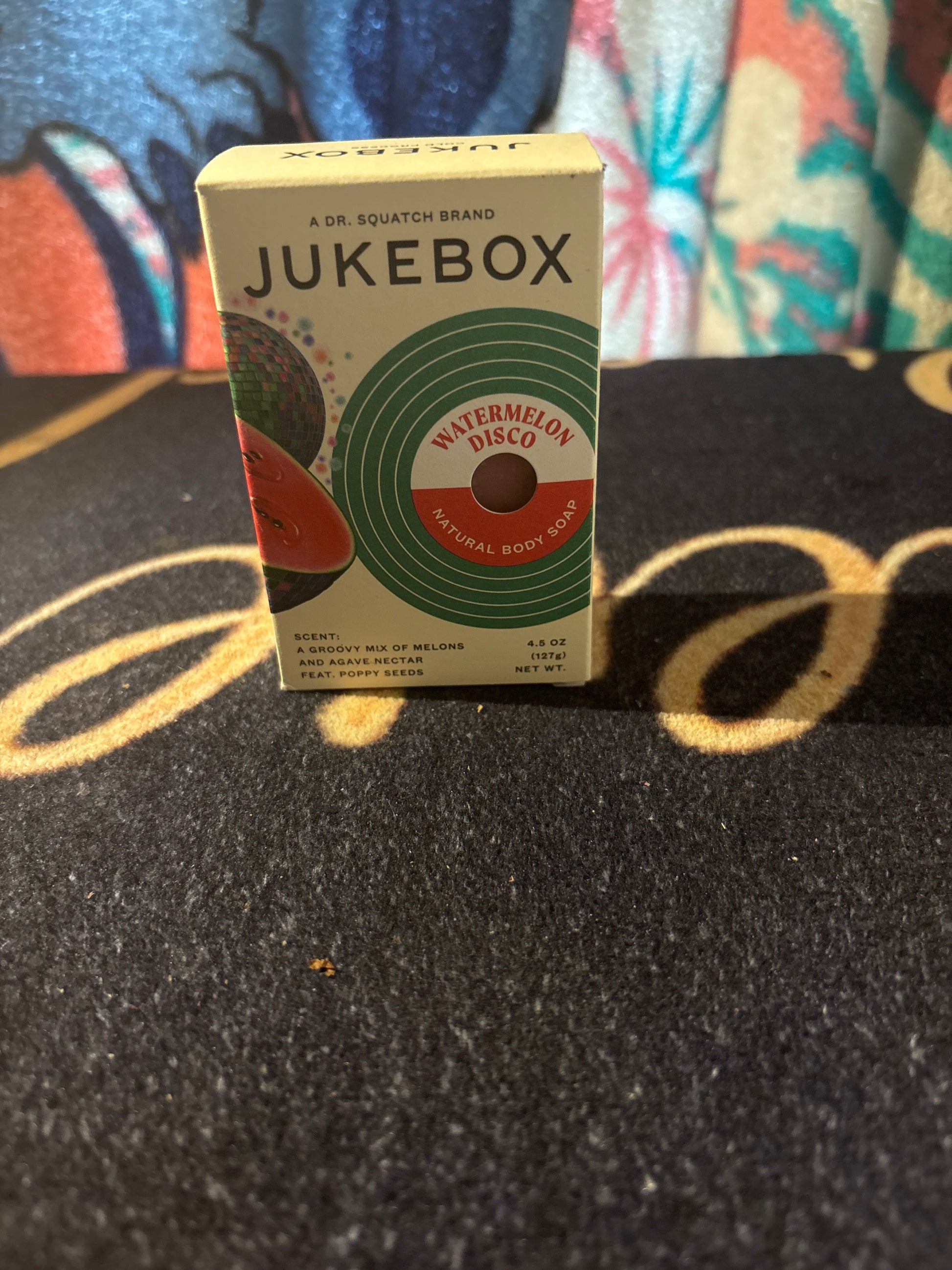 Dr Squatch Juke Box Watermelon Disco Soap is a 4.5 oz cleansing bar that effectively removes impurities while maintaining skin hydration. Formulated with natural ingredients, it offers a gentle yet thorough wash, ideal for everyday use. The soap's composition supports skin health, making it suitable for various skin types.